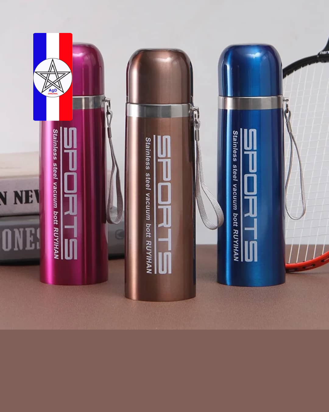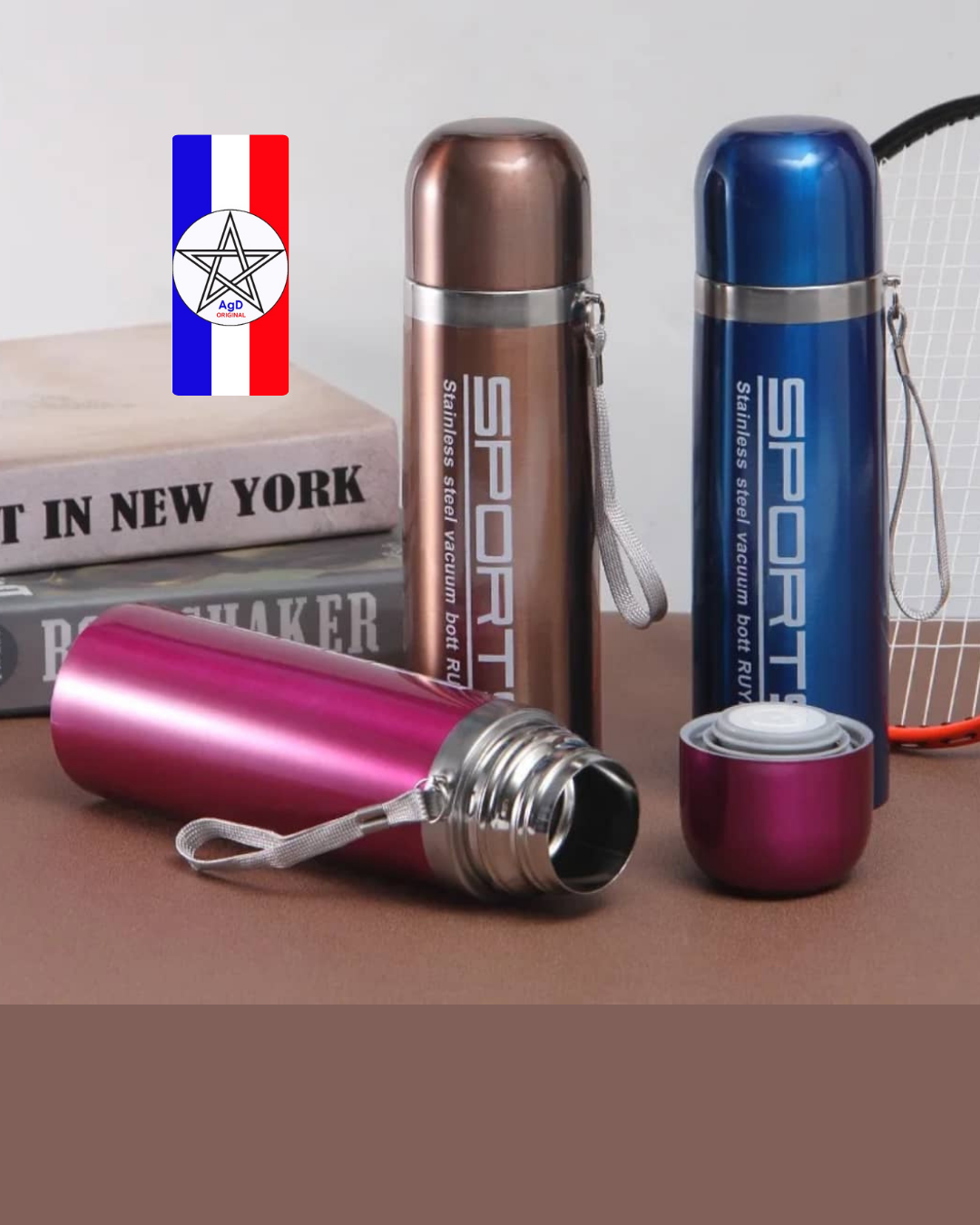 C’ est une bouteille en acier inoxydable de marque SZM Sports.