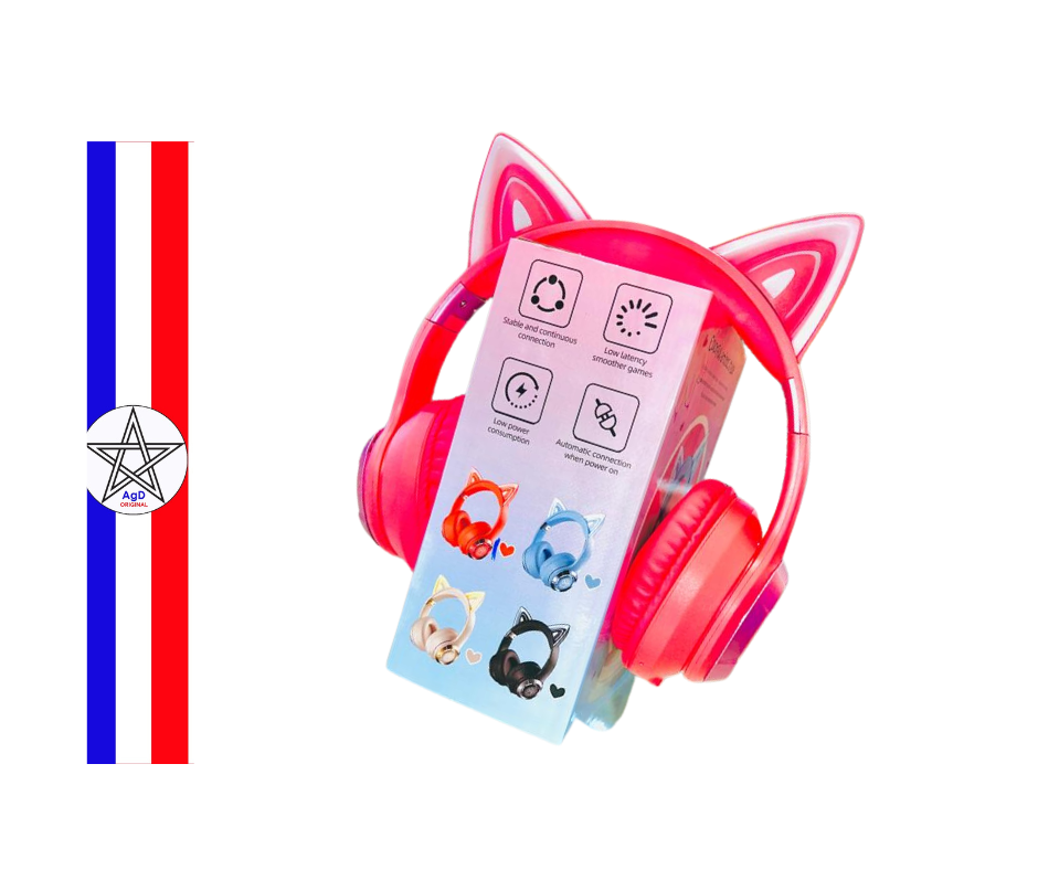 Ce casque sans fil avec oreilles de chat combine un design ludique et une fonctionnalité Bluetooth pour écouter de la musique et passer des appels. Il est souvent conçu pour être portable et confortable, convenant aux enfants comme aux adultes.