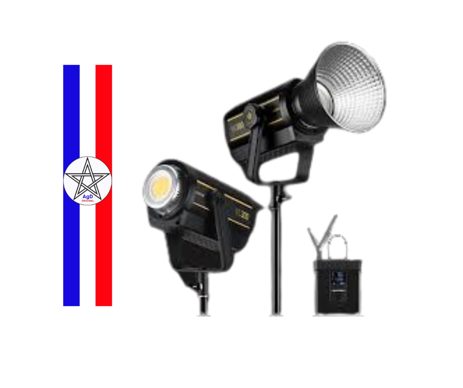 Accessoires : Il est équipé de volets coupe-flux (barndoors) noirs intégrés et d’un support de montage articulé pour fixation sur un trépied ou un appareil photo.