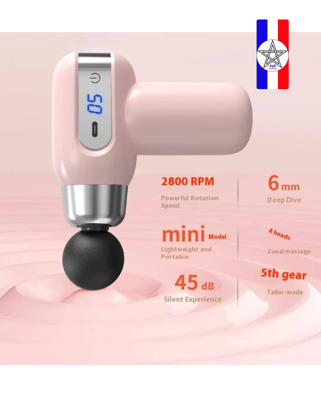 - Type de produit : Il s’agit d’un pistolet de massage (masseur compact) conçu pour soulager les douleurs musculaires, la raideur et accélérer la récupération.