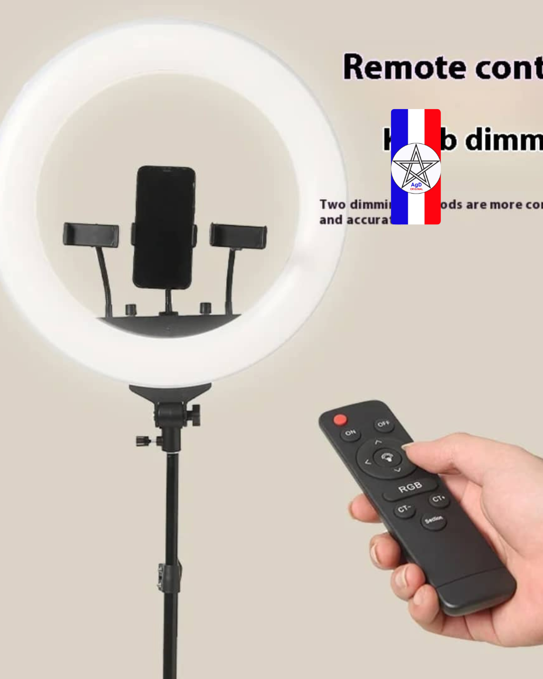 - Accessoires inclus : Le kit inclut fréquemment un trépied/support d’éclairage, plusieurs supports pour smartphone, un adaptateur de sabot froid pour appareil photo, et un sac de transport pour la ring light.