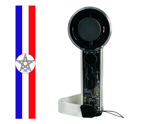 Ce ventilateur de refroidissement est un appareil compact et moderne, conçu pour offrir une ventilation puissante et efficace dans un format portable. Son design innovant met en valeur une technologie avancée, visible à travers son corps partiellement transparent.
